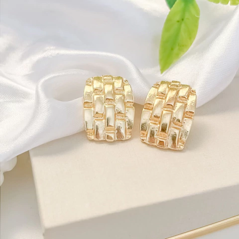 Brinco folheado quadrado detalhado B1029