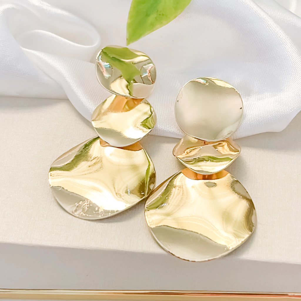 Brinco três círculos dourado BJ4070