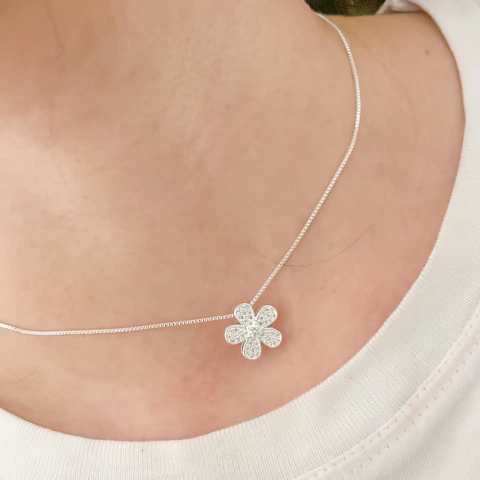 Colar folheado prata flor zircônia CP