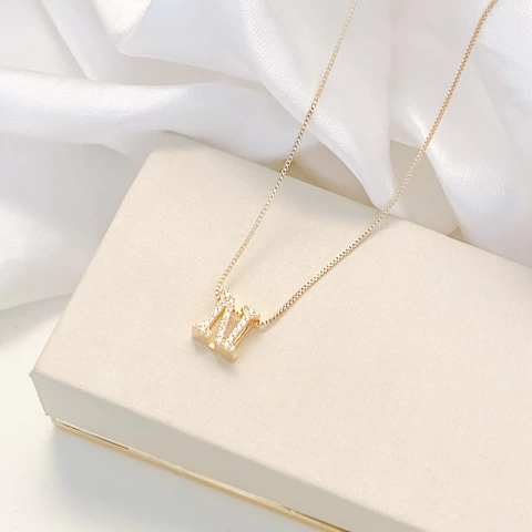 Colar regulável folheado letra N cravejado
