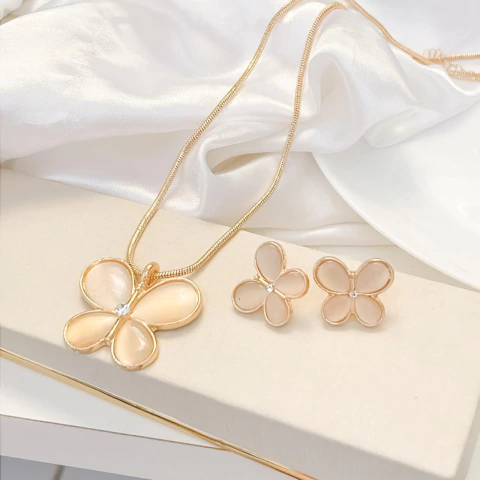Conjunto colar + brinco borboleta C2034