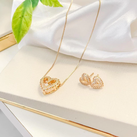 Conjunto colar + brindo coração cravejado C2004