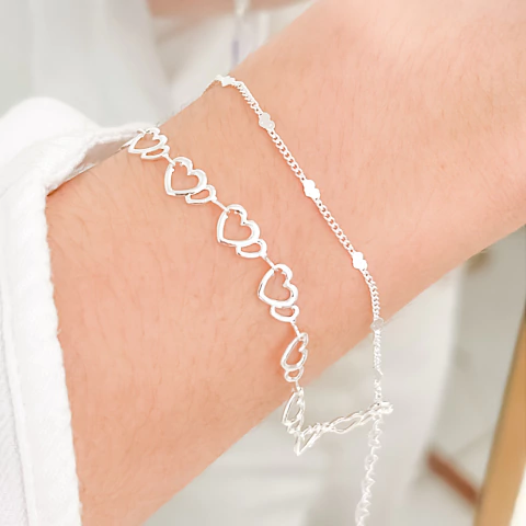Pulseira folheada prata dupla corações PP1004